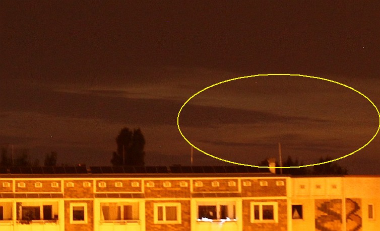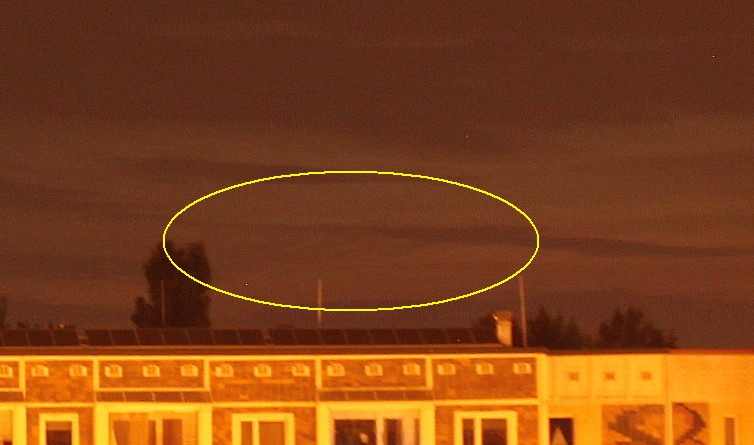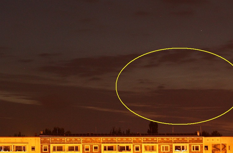 NLC through cloud gaps ~ 005° - 015° in the lower right