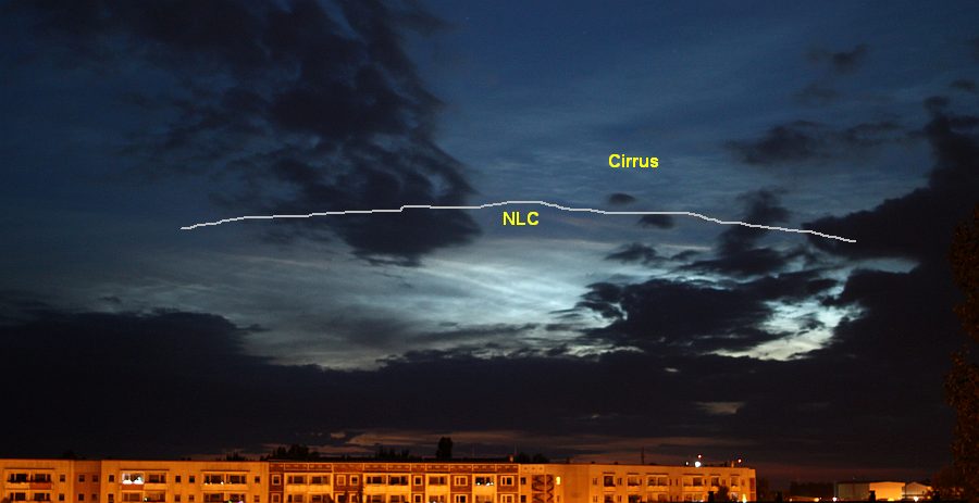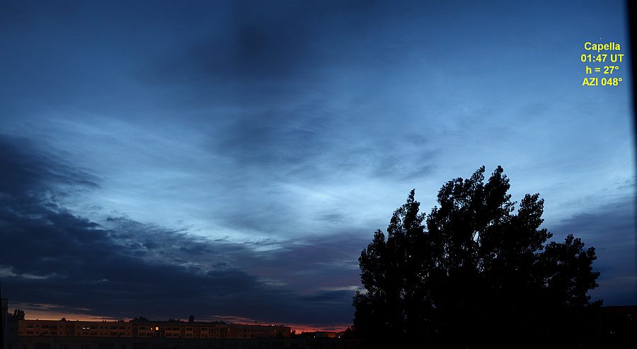 *period with automatic camera NLC captures; early evening in higher cloud gaps = no NLC; **temporarily in cloud gaps only but probably the whole time through; NLC still lasting after end of observation; 21:23 - 01:06 UT no NLC in AZI 280° - 330° in cloud gaps |