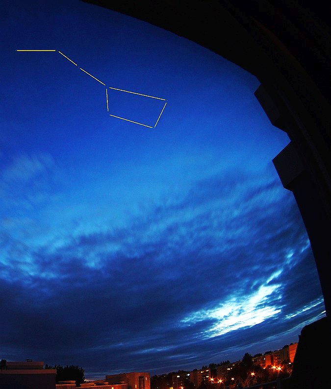 above dark clouds, in and around Big Dipper / Ursa Major