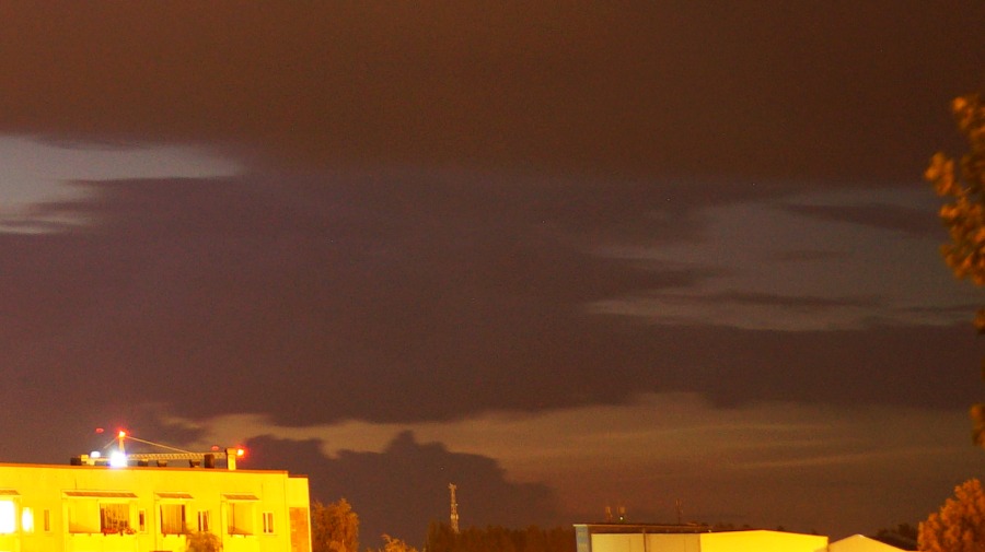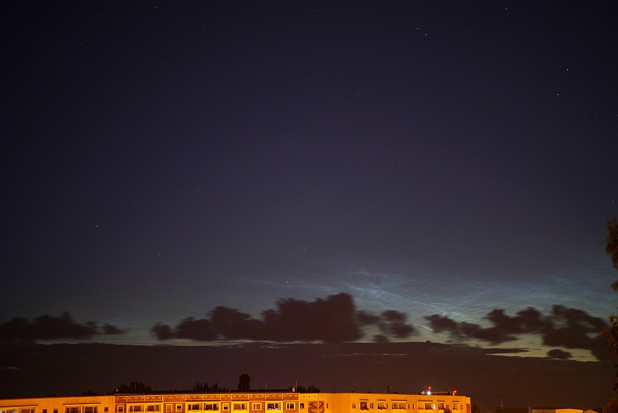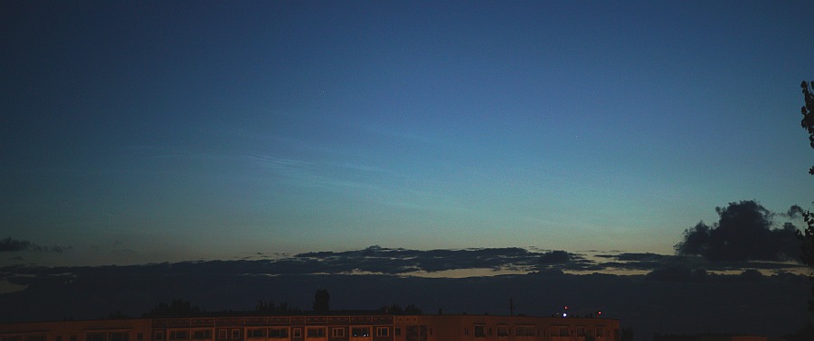 Evening: AZI at least ~ 010°- 020°, small cloud gap, then tree to the east, Morning: AZI at least ~350° - 020°, then tree to the east, highest part around AZI 005°-015°; automatic camera capture from 20:17; *period with automatic camera NLC captures |