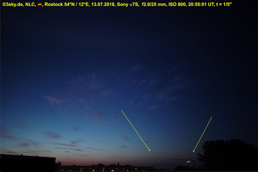 evening: start ~ 360° - 040°, moving westward, then a break around 23:30 UT + later new NLC in the morning: (at least): ~ 305° - 040° too much clouds in the morning part, but great event |