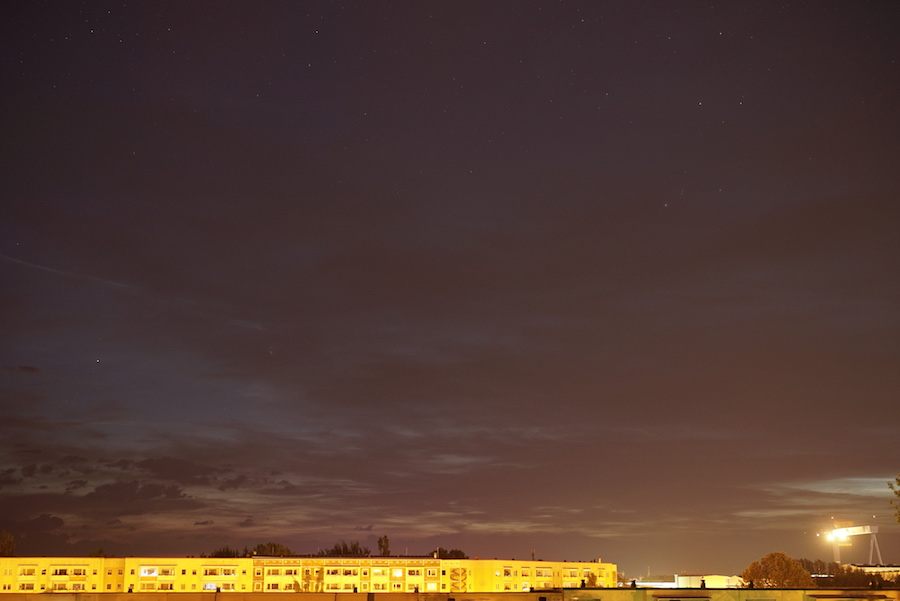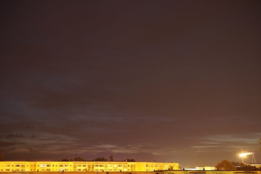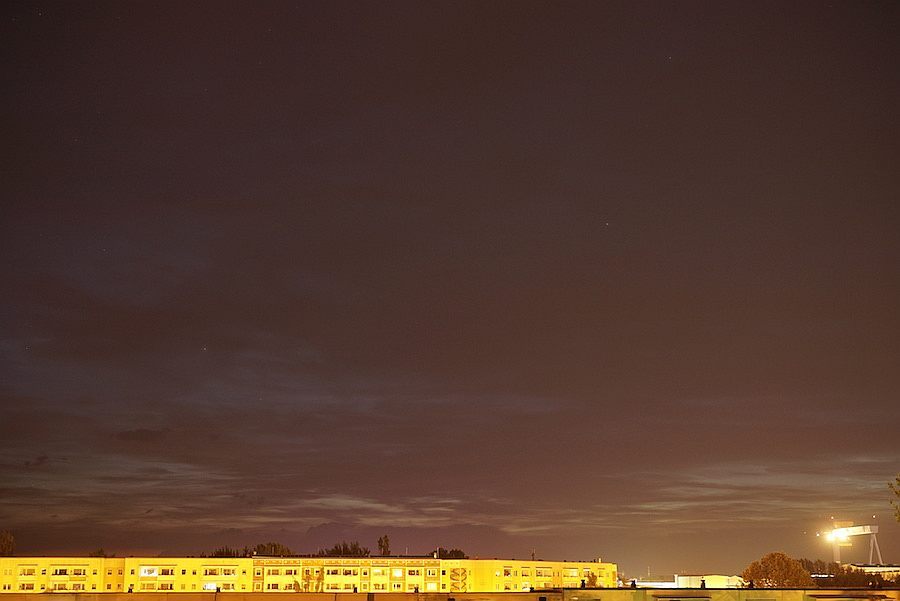 * automatic camera observations: (NW sector 300 - 330 + N sector 350 - 030) during short visual inspection around 00 UT nothing seen in gaps with 12 x 50 binocular, too much clouds + probable contrast effects; next visual inspection at 01:30 UT: better view, only scattered Ci in N - NNE, clear above but no NLC |