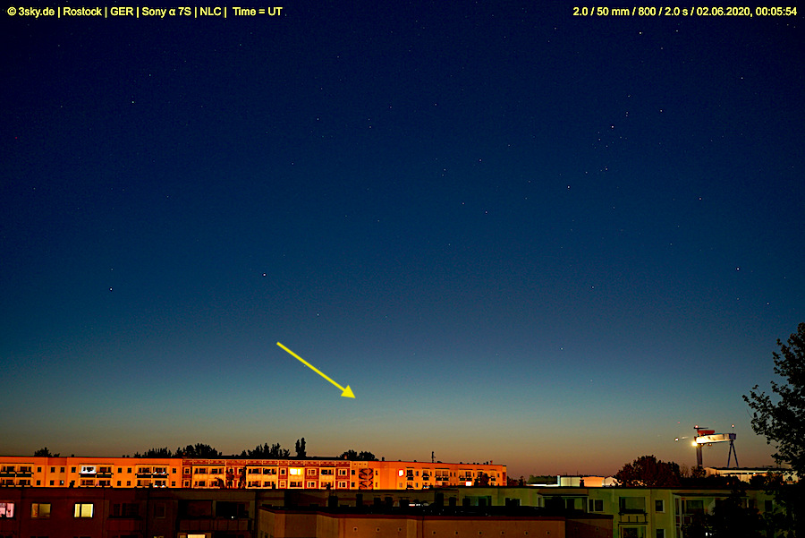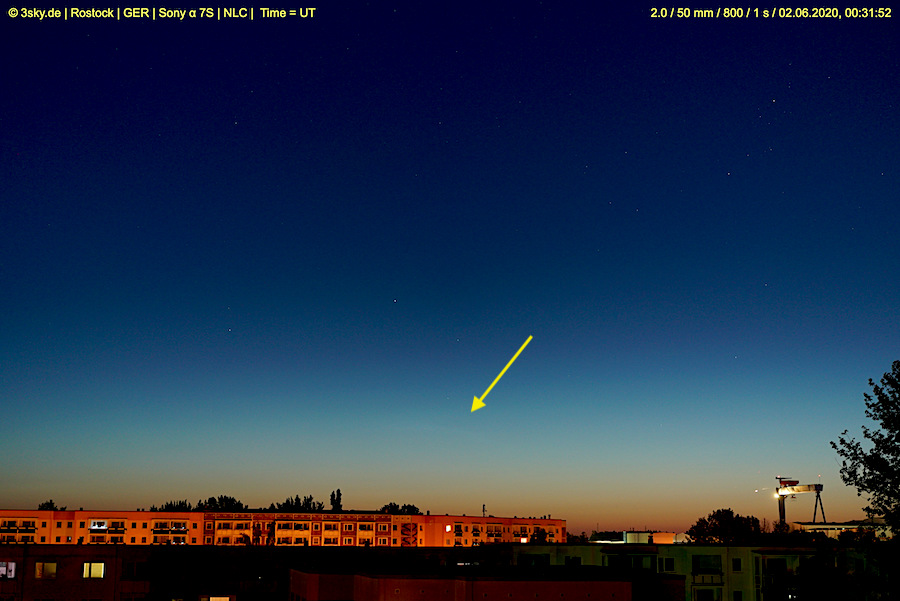 AZI: at least ~ 355° - 017° (poss. up to 021°) no visual NLC from evening - 20:50 UT and from 23:40 - 23:50 UT * automatic camera observations: ~ 350° - 030° |