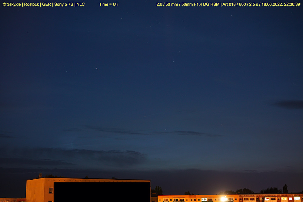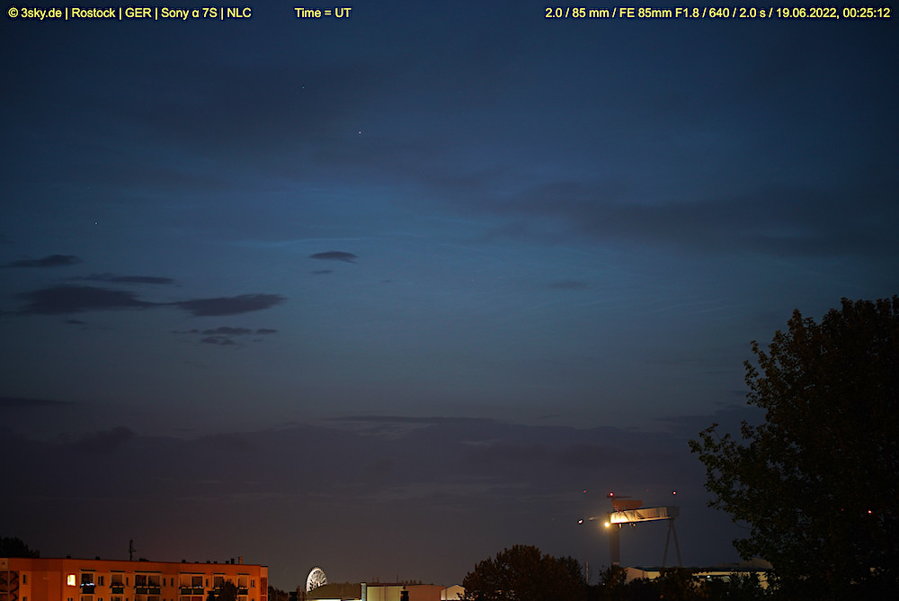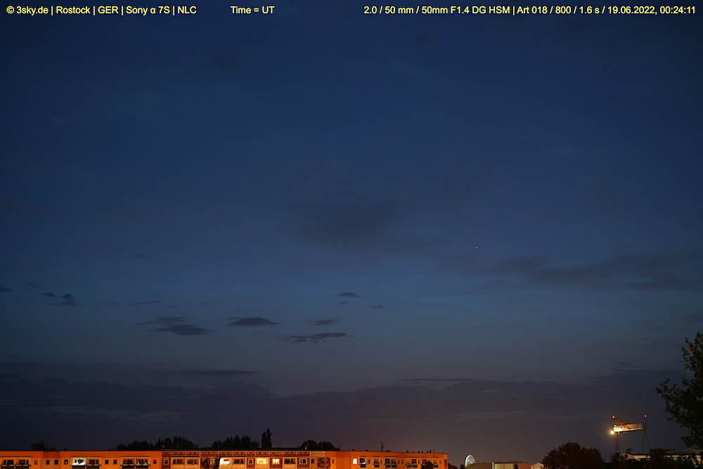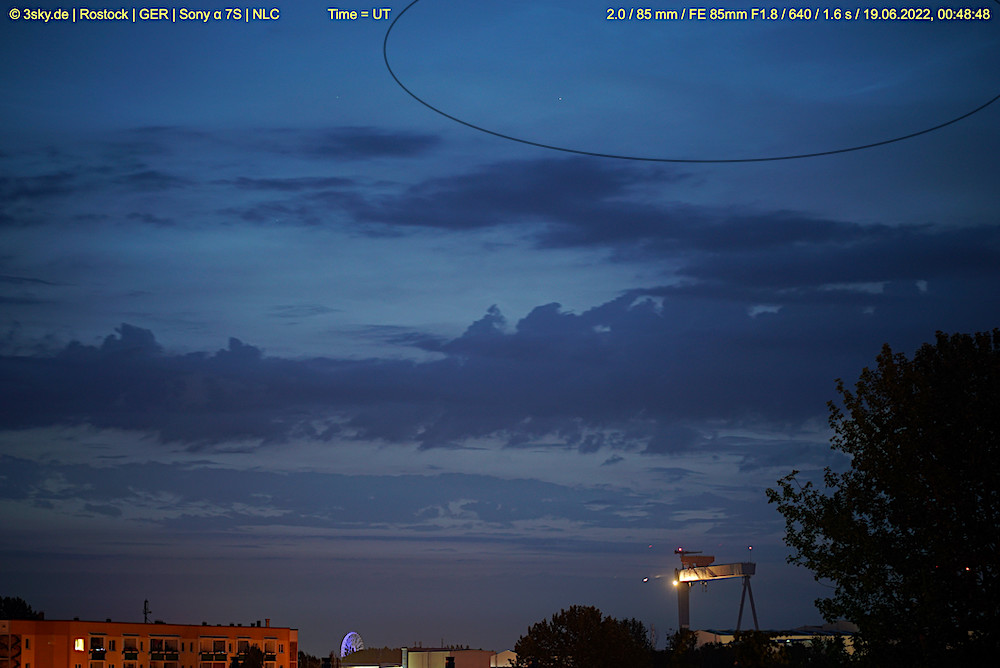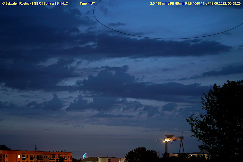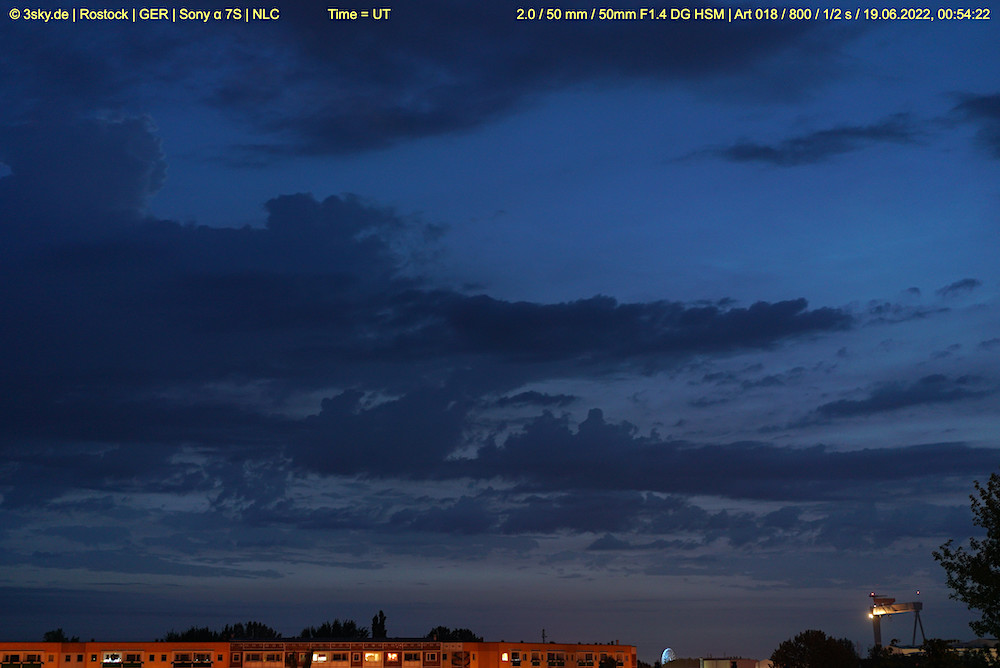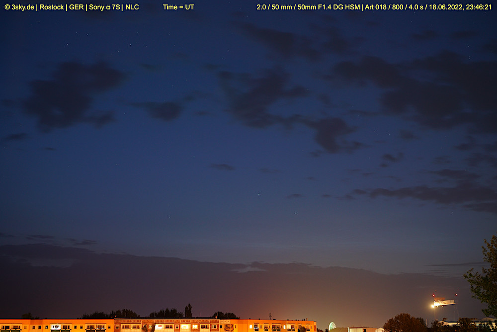 very faint NLC again * visual inspection up to 22:50 UT (nothing visual - only camera-NLC, same around 23:50 UT + 01:00 UT) maximum elevation in the morning * automatic camera observations: 294° - 030° |