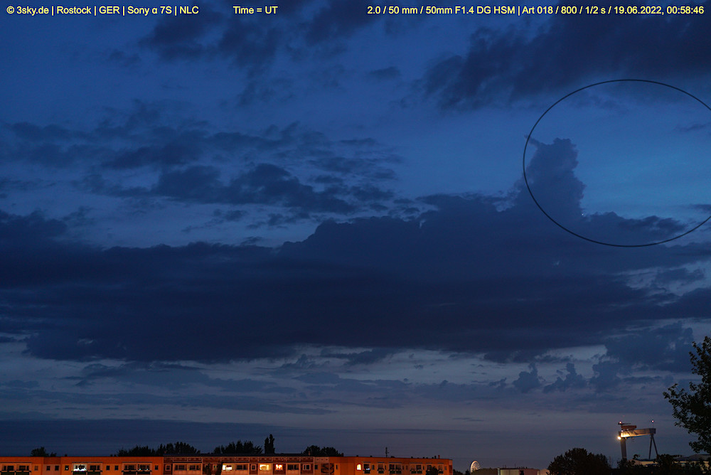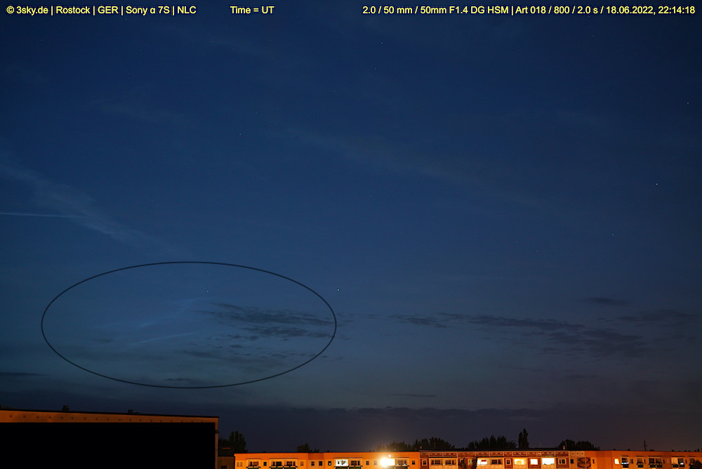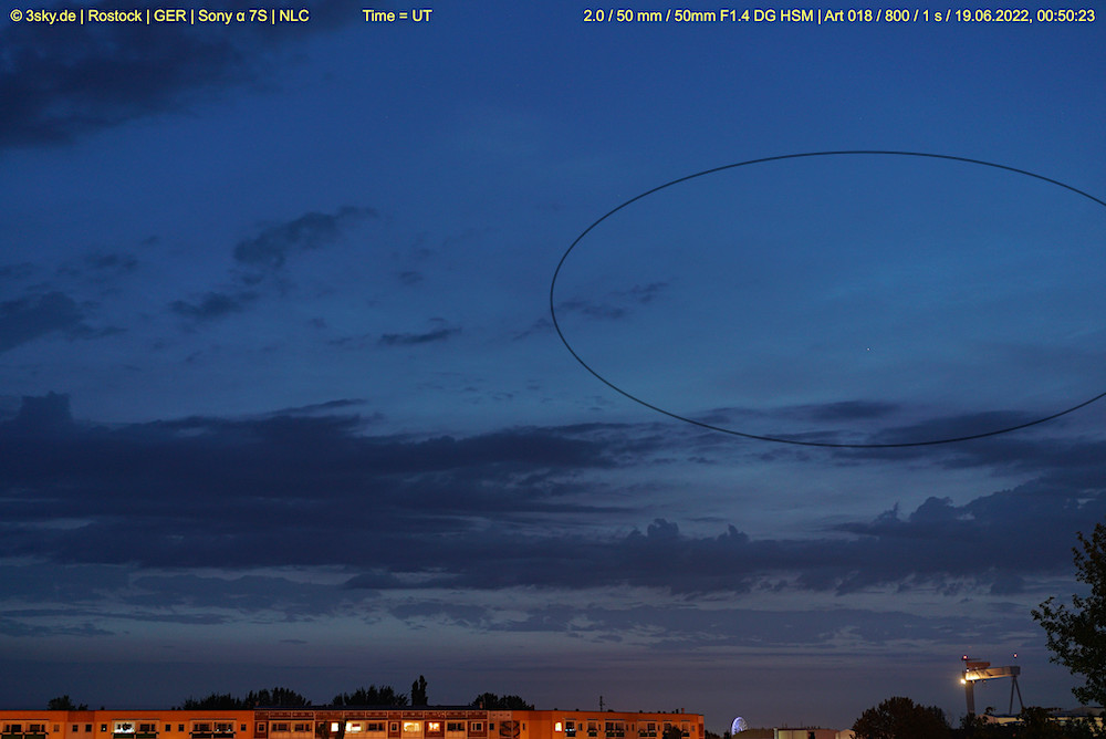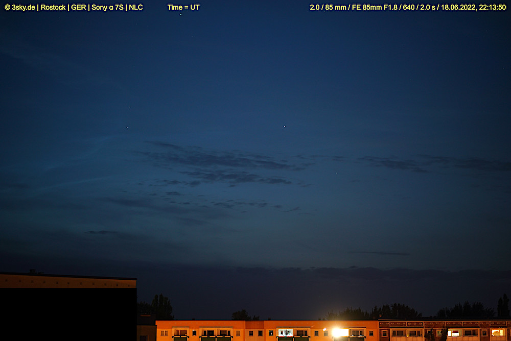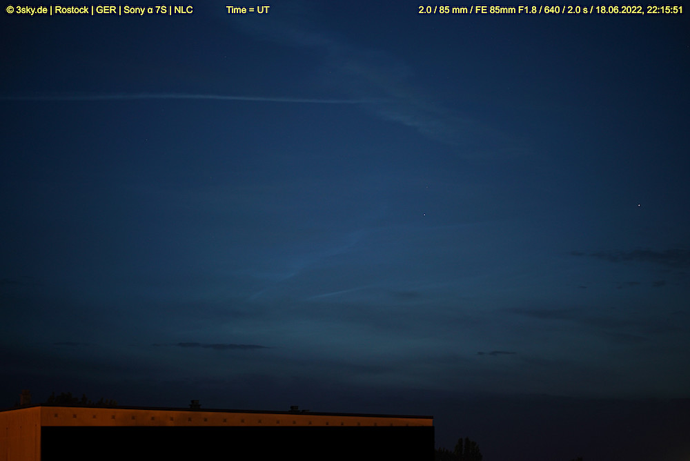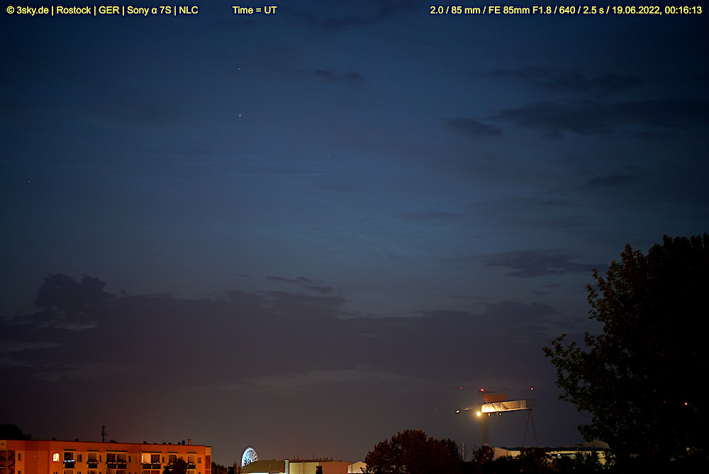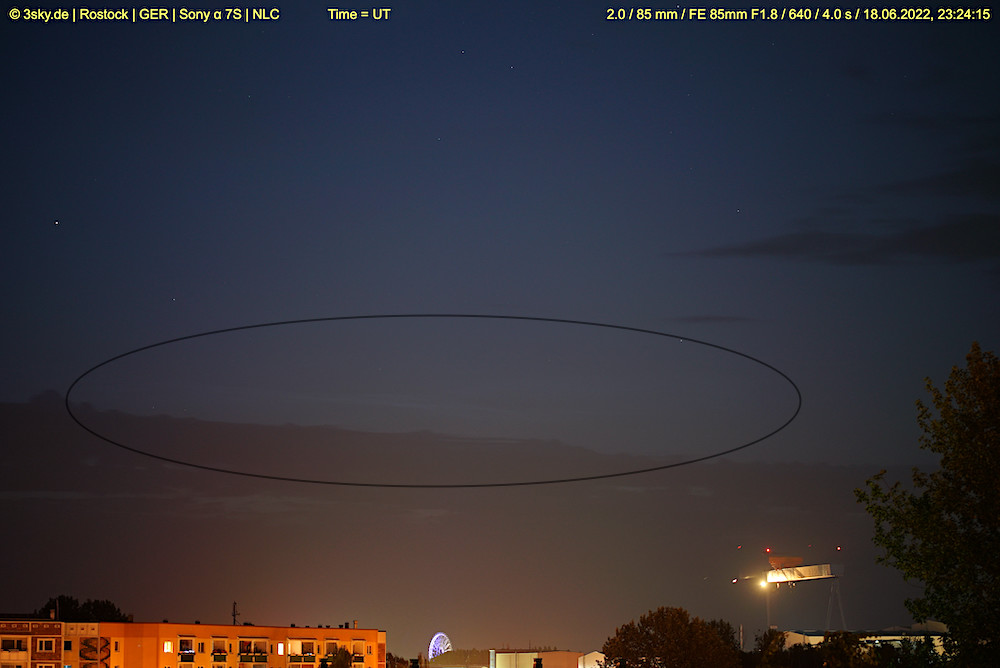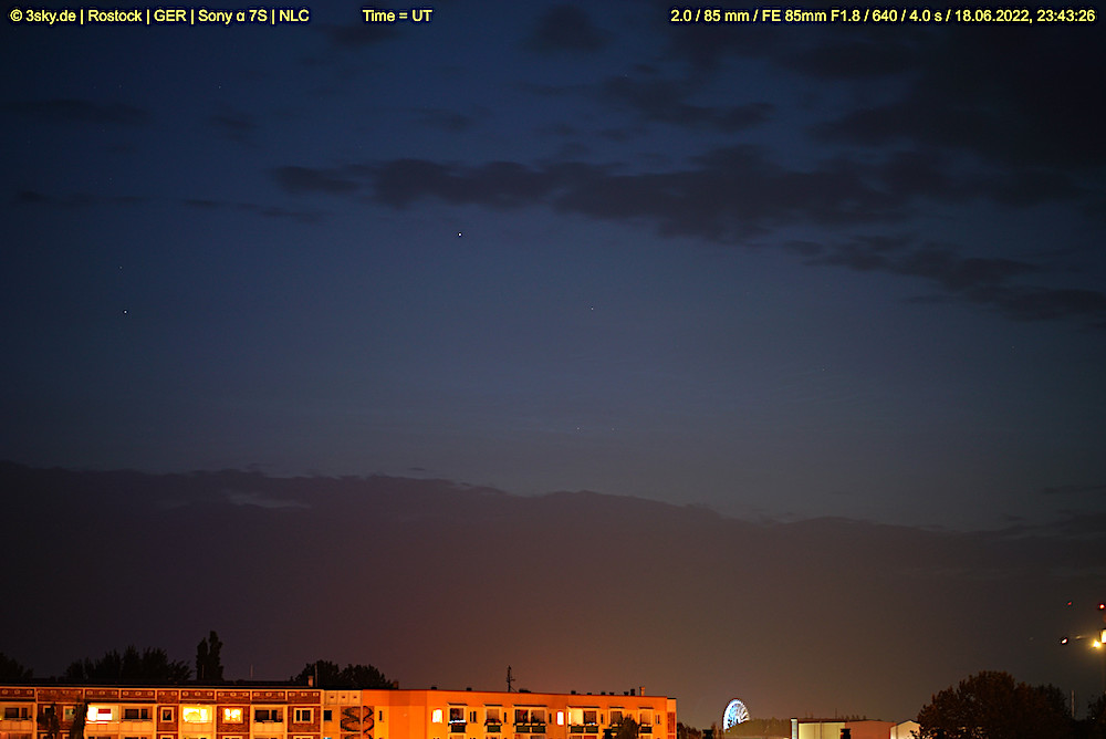 very faint NLC again * visual inspection up to 22:50 UT (nothing visual - only camera-NLC, same around 23:50 UT + 01:00 UT) maximum elevation in the morning * automatic camera observations: 294° - 030° |
