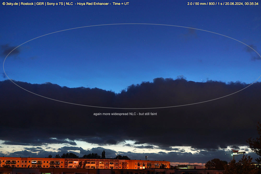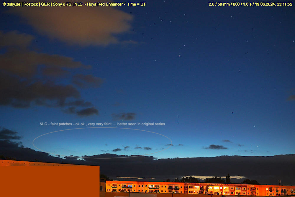 most parts through / upper clouds; unvisible with naked eye during visual inspection from 23:10 - 23:25 UT and not seen in the electronical camera display as well * automatic camera observations |