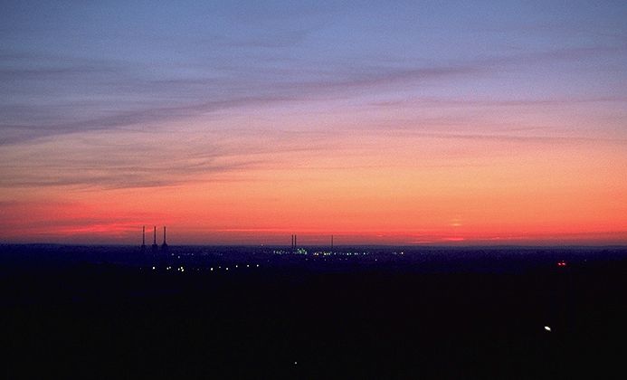 | Cirrus am 09.07.2002 morgens vor Sonnenaufgang. Blickrichtung ca. Nordost über das Donautal. Ort: Manching bei Ingolstadt / Oberbayern. Objektiv f=50mm, Fujichrome Sensia 400. In der rechten Horizonthälfte bahnten sich beim Sonnenaufgangspunkt einige Fragmente einer Lichtsäule an. |